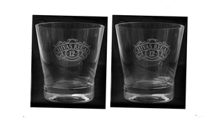 CHIVAS REGAL SCOTCH WHISKY 2 FINE WALLED TUMBLER GLASSES BNWOB MAN CAVE