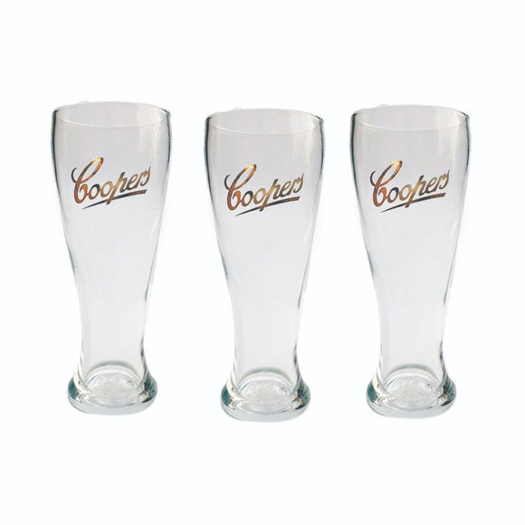 COOPERS Gold Logo 3 x Schooner Beer Glasses 320/285mls BNWOB Aus MAN Cave