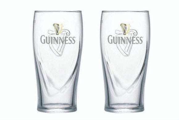 GUINNESS 2 x Gravity Pint Glasses 585ml Embossed Harp MAN CAVR IRE