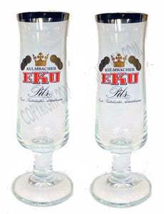 EKU Lager Kulmbach 2 x Vintage Beer Flute Glasses 250ml 16x6cm Silver Rimmed