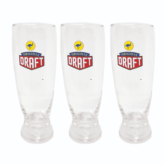 EMU EXPORT DRAFT SWAN BREWERY 3 x VINTAGE BEER GLASSES 1990's 350ml MAN CAVE
