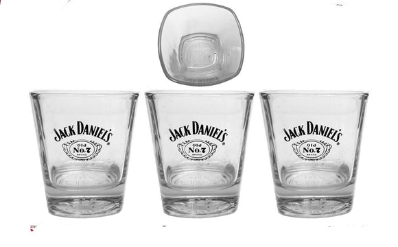 JACK DANIELS WHISKEY No.7 -3 x EMBOSSED BASED TUMBLER GLASSES BNWOB MAN CAVE USA