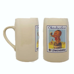 LOWENBRAU OKTOBERFEST 2 x Vintage Ceramic Beer Steins Tankards 800ml MAN CAVE