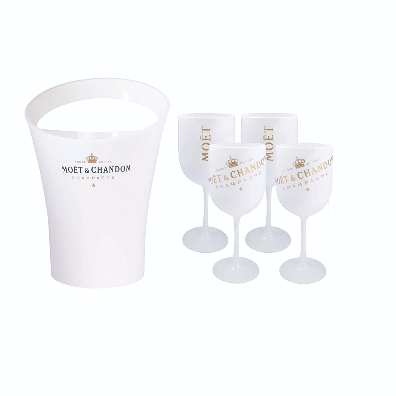 Moet & Chandon French Champagne Ice Bucket + 4 Plastic Champagne Glasses BNWOB