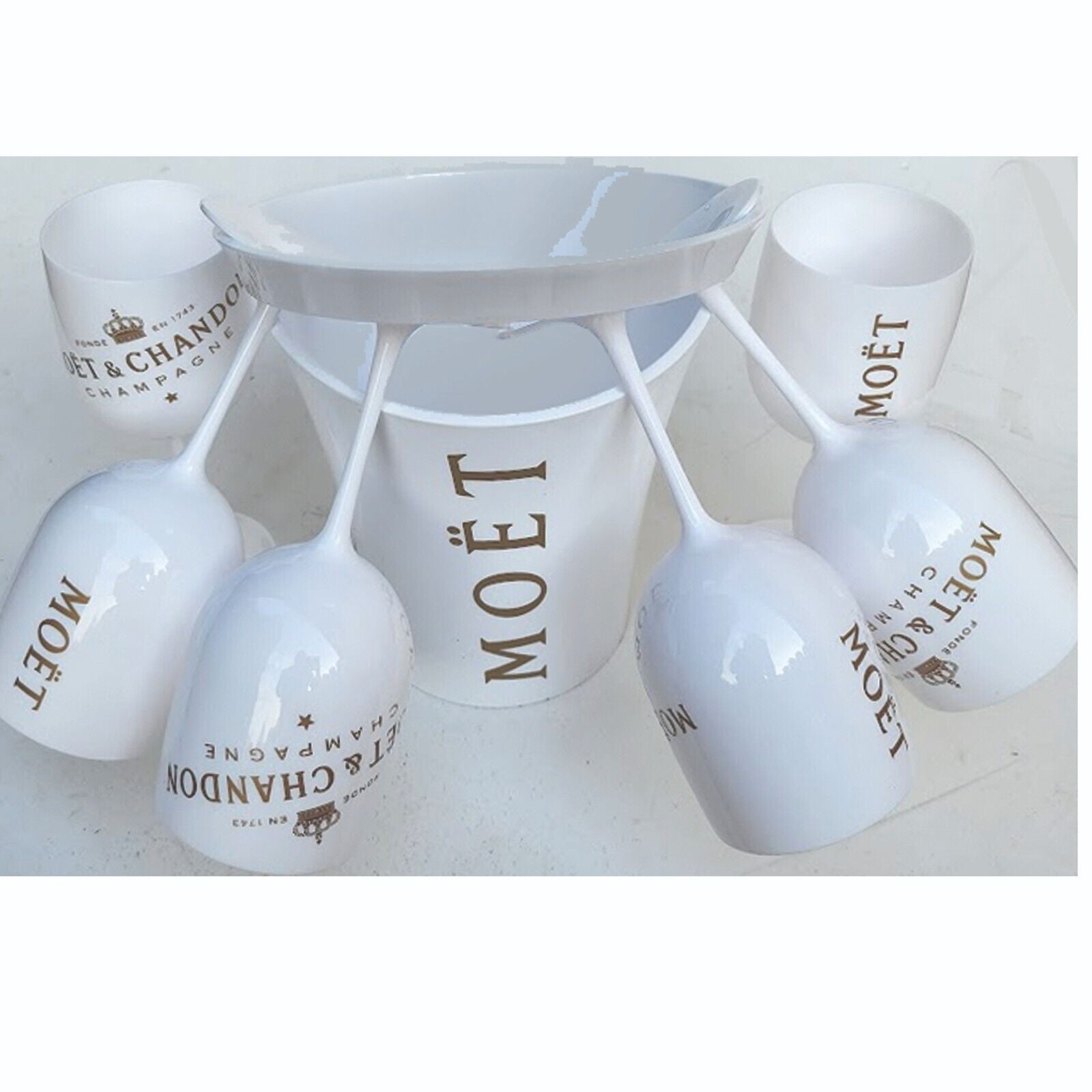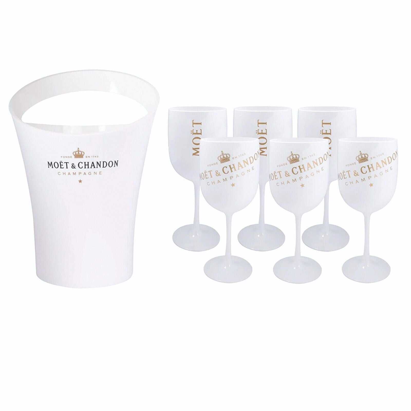 Moet & Chandon French Champagne Ice Bucket + 6 Plastic Champagne Glasses BNWOB