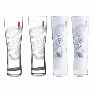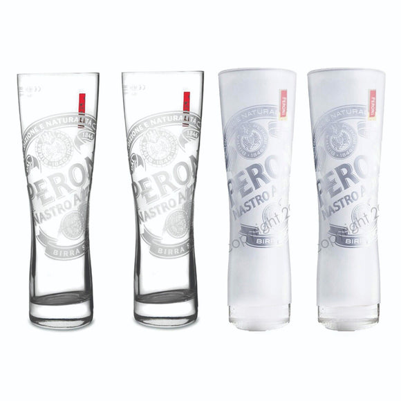 Peroni Nastro Azzuro 4 x Beer Glasses 2x Frosted 2 x Clear 390/300ml BNWOB