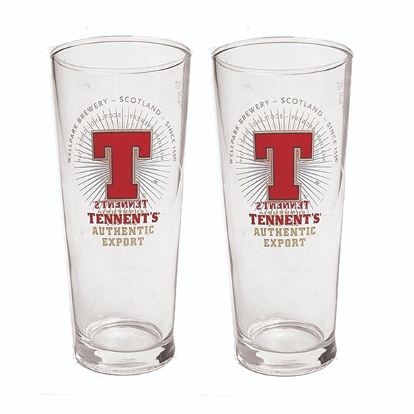 TENNENT'S LAGER EXPORT 2 x Half Pint Beer Glasses 300ml Man Cave SCOTLAND