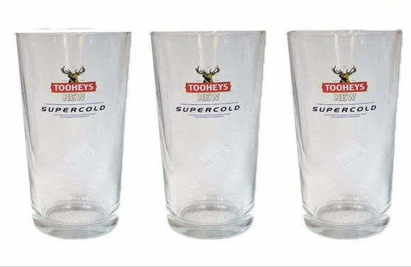 Tooheys Super Cold 3 x Conical Pint Glasses 580ml 19x9cm BNWOB Man C Aussie