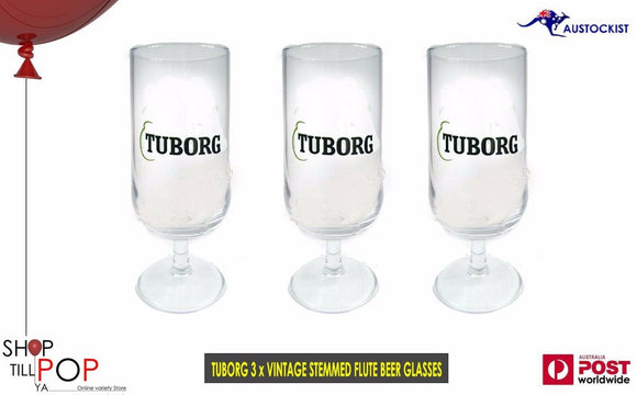 Tuborg Denmark 3 x Beer Glasses 300ml 16 X 6cm Vintage Fine walled High End