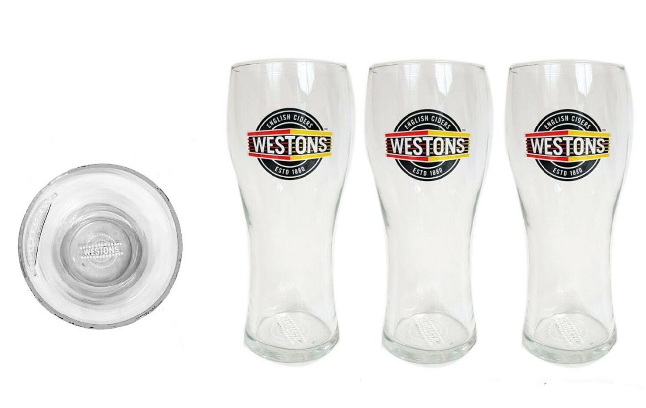 WESTON'S ENGLISH CIDER 3 x PINT GLASSES 585ml BNWOB UK MAN CAVE APPLE CIDER