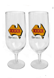XXXX 2 x Stemmed Beer Glasses Vintage1970's 300ml MAN CAVE VERY RARE MINT COND'